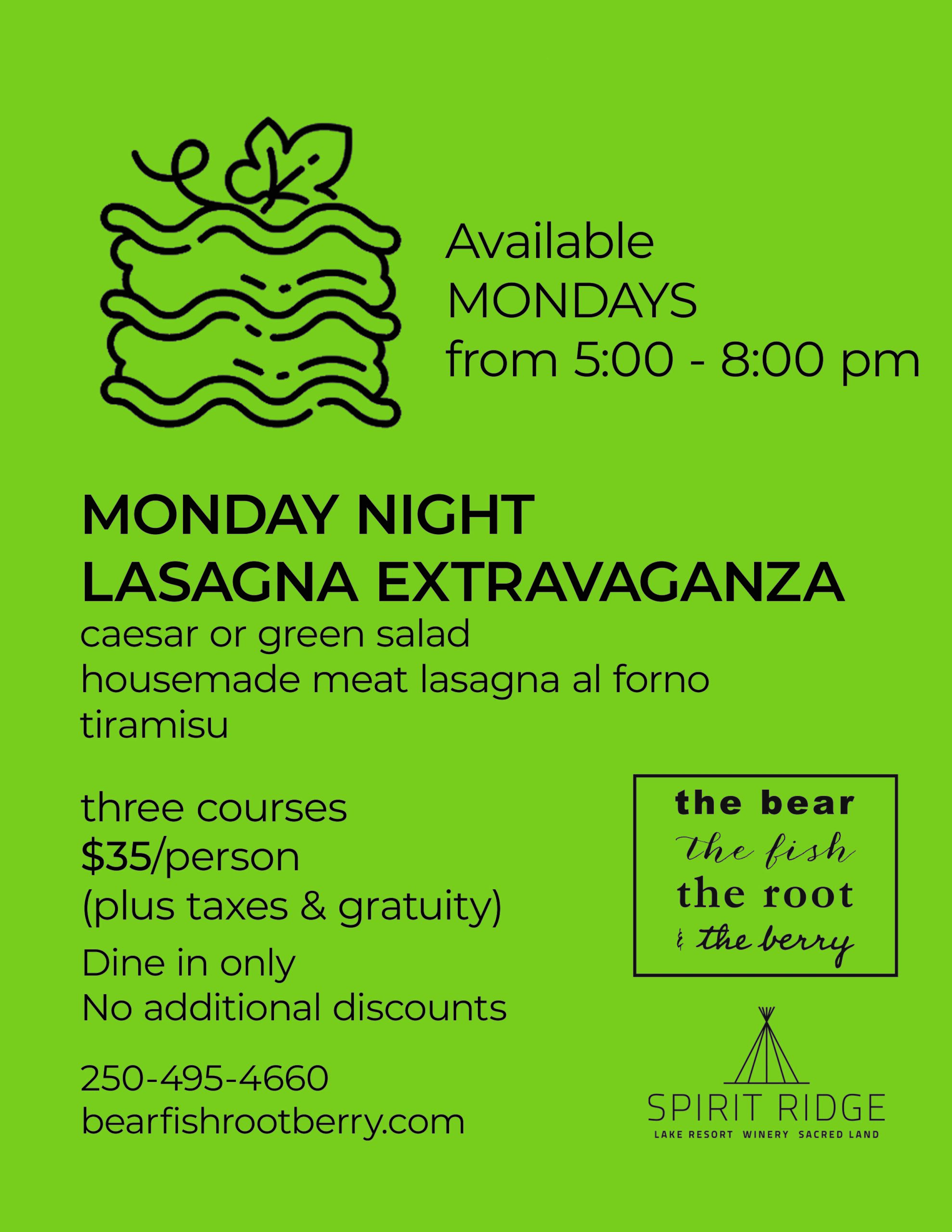 LASAGNA EXTRAVAGANZA @ the Bear, the Fish, the Root & the Berry