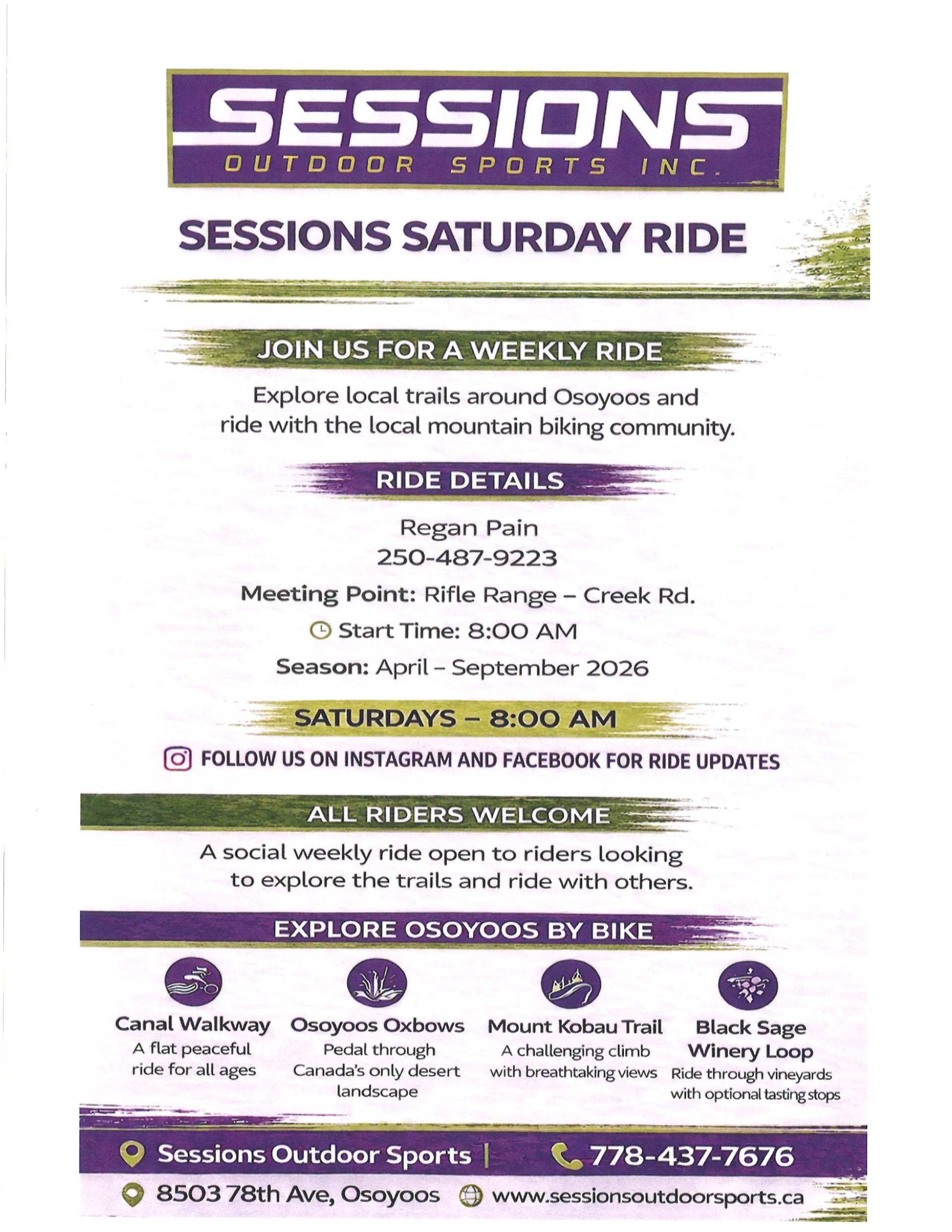 Saturday Ride with Regan @ Sessions Outdoor Sports INC.